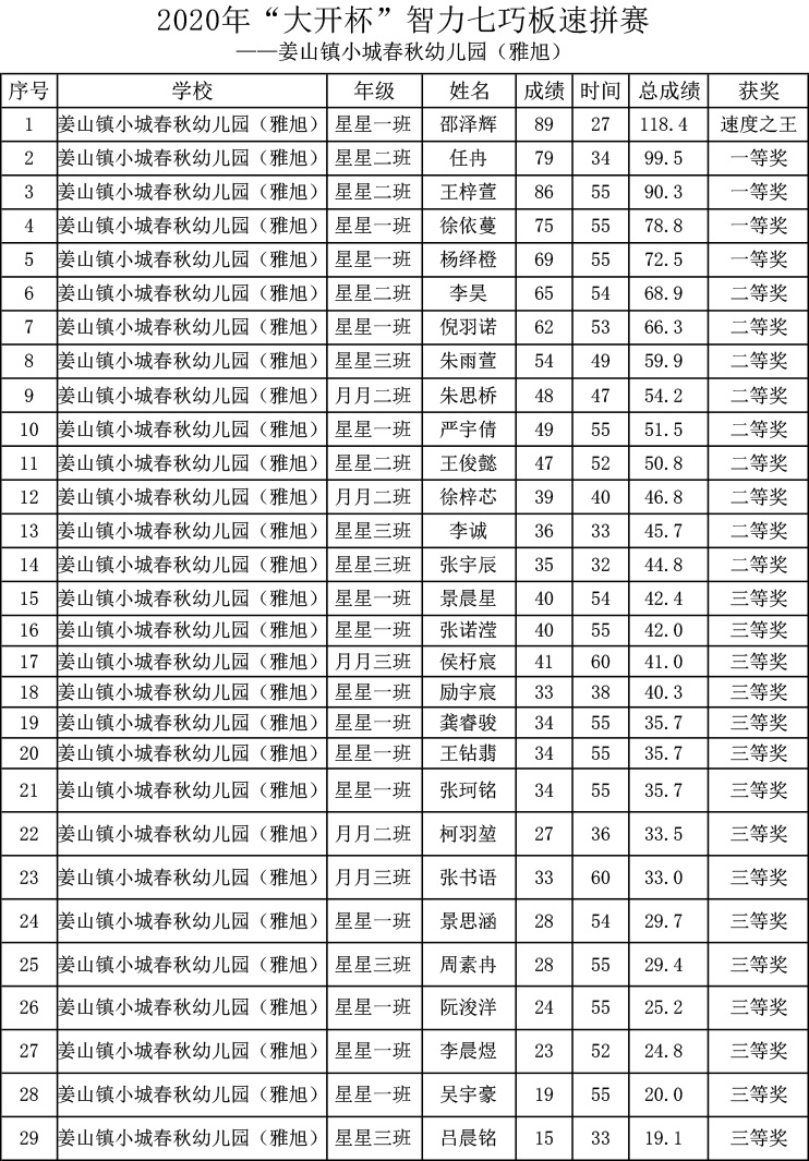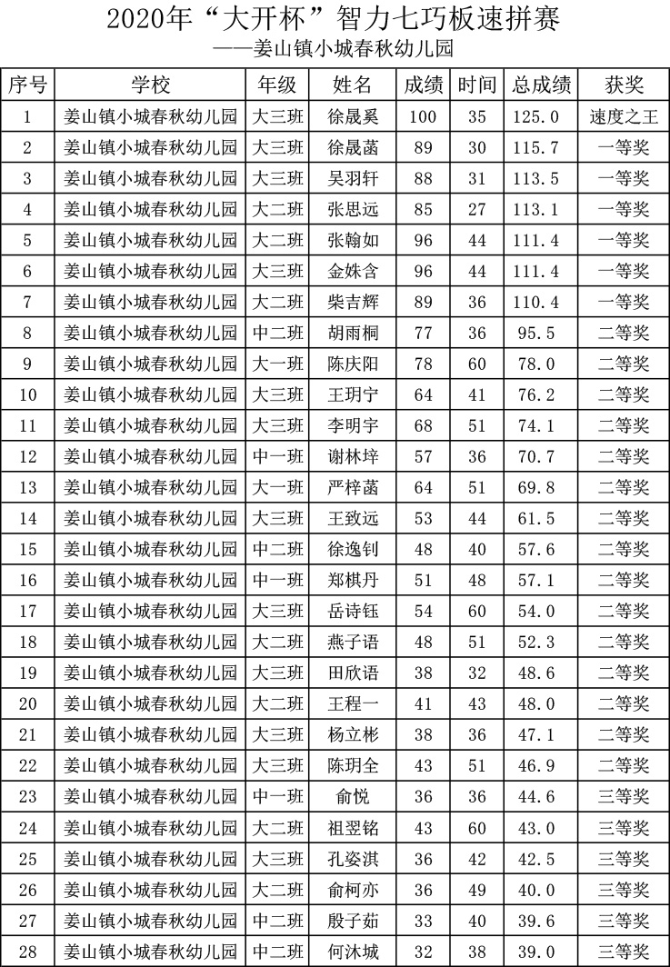 为锻炼青少年动手、动脑能力;激发科学兴趣,启迪创造意识;培养空间想象力,提高科学素质和审美能力;促进科技教育活动的普及与发展。12月30日,由七巧科技系列活动宁波组委会主办的2020年第三届“大开杯”智力七巧板校园巡回赛在姜山镇小城春秋幼儿园举办。上午为小城春秋(雅旭园)赛区,下午为小城春秋幼儿园赛区。