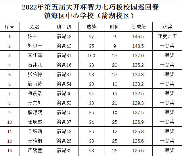【获奖公示】浙江省第二届“大开杯”青少年智力七巧板竞赛决赛获奖名单