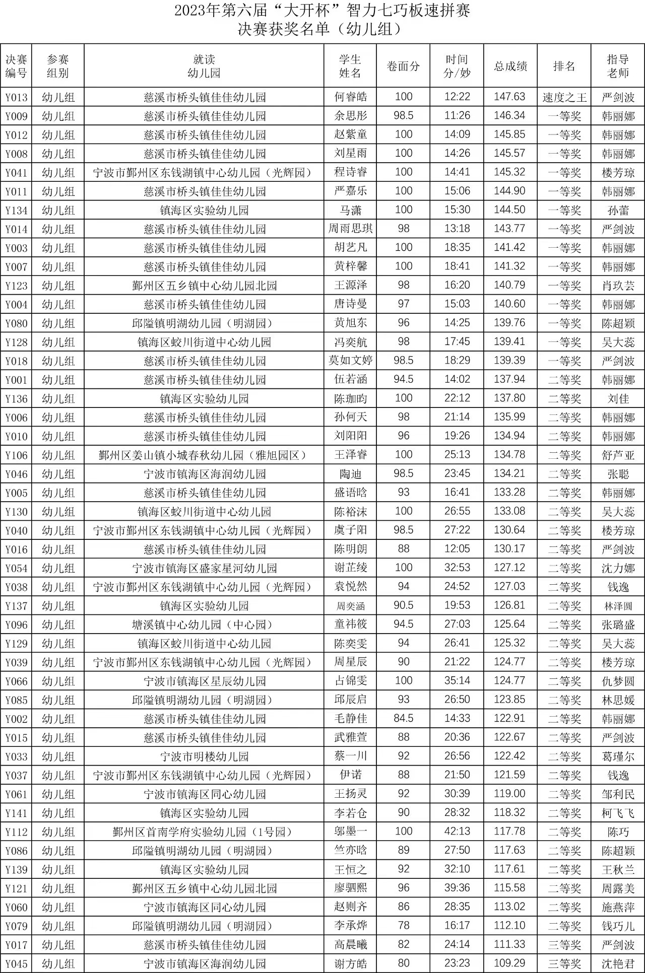 【获奖公示】浙江省第二届“大开杯”青少年智力七巧板竞赛决赛获奖名单