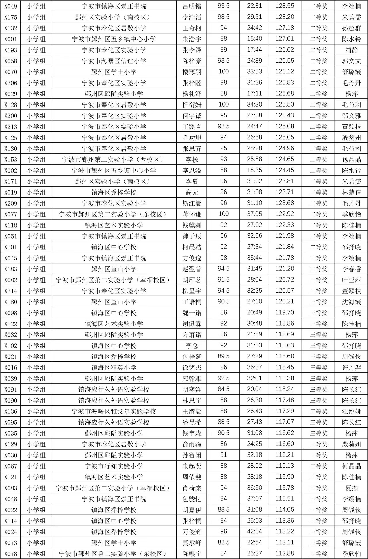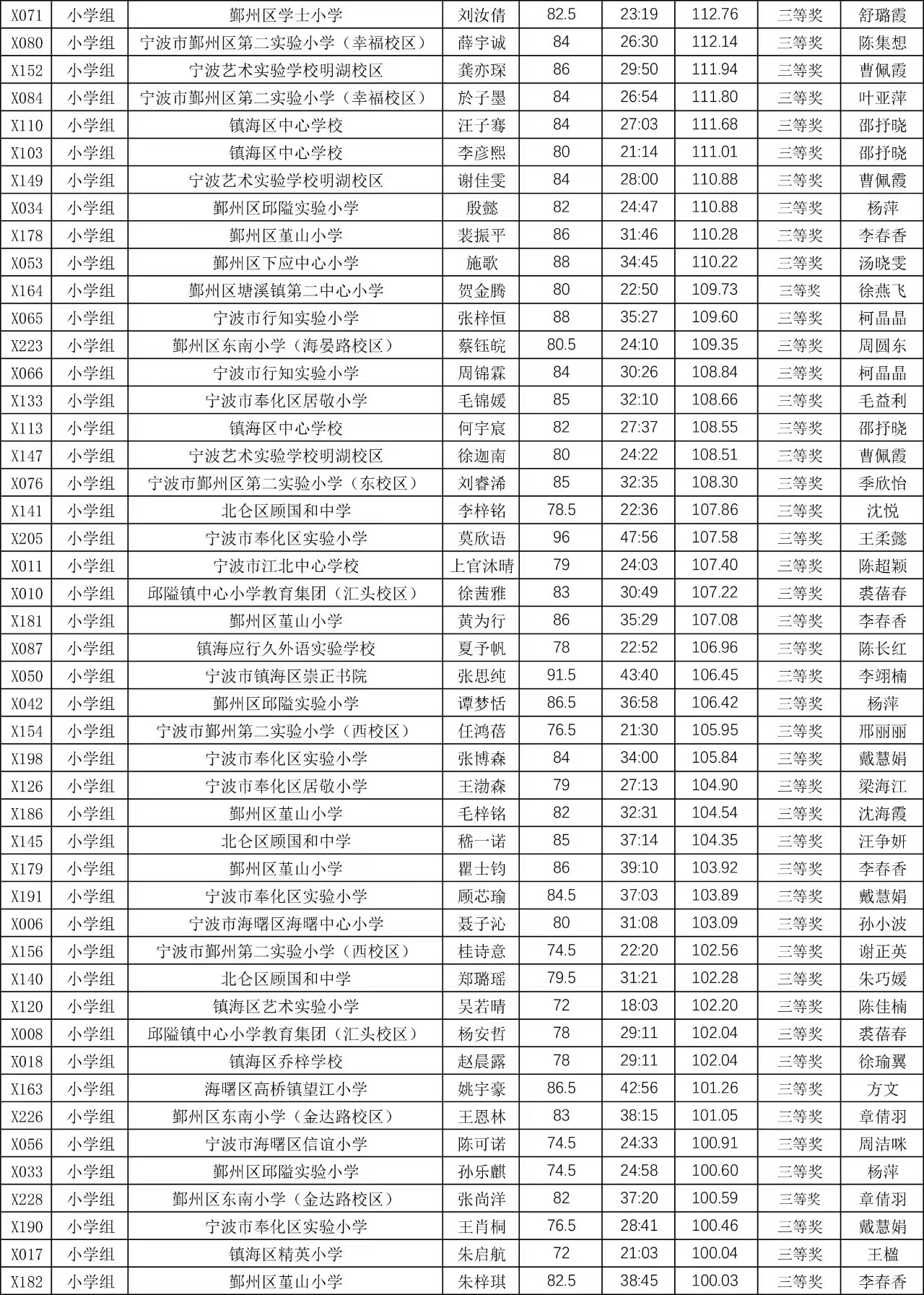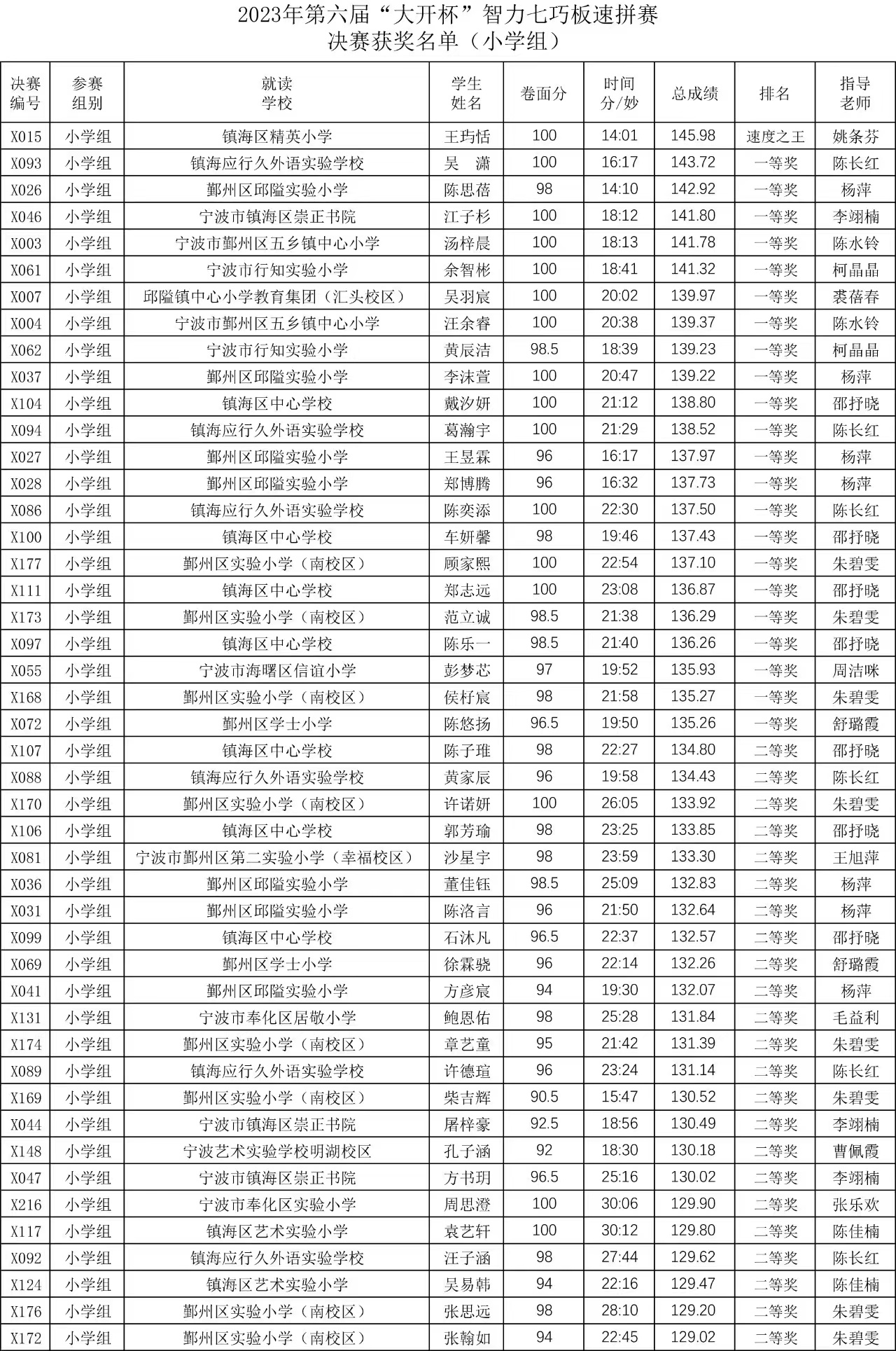 校赛获奖公布-宁波市鄞州区实验小学南校区速拼赛