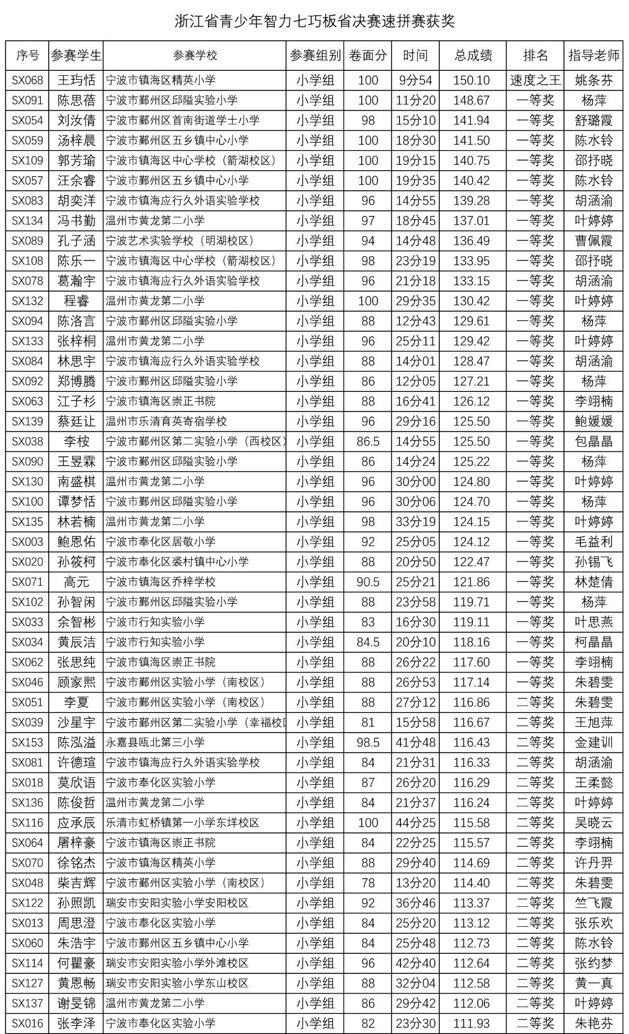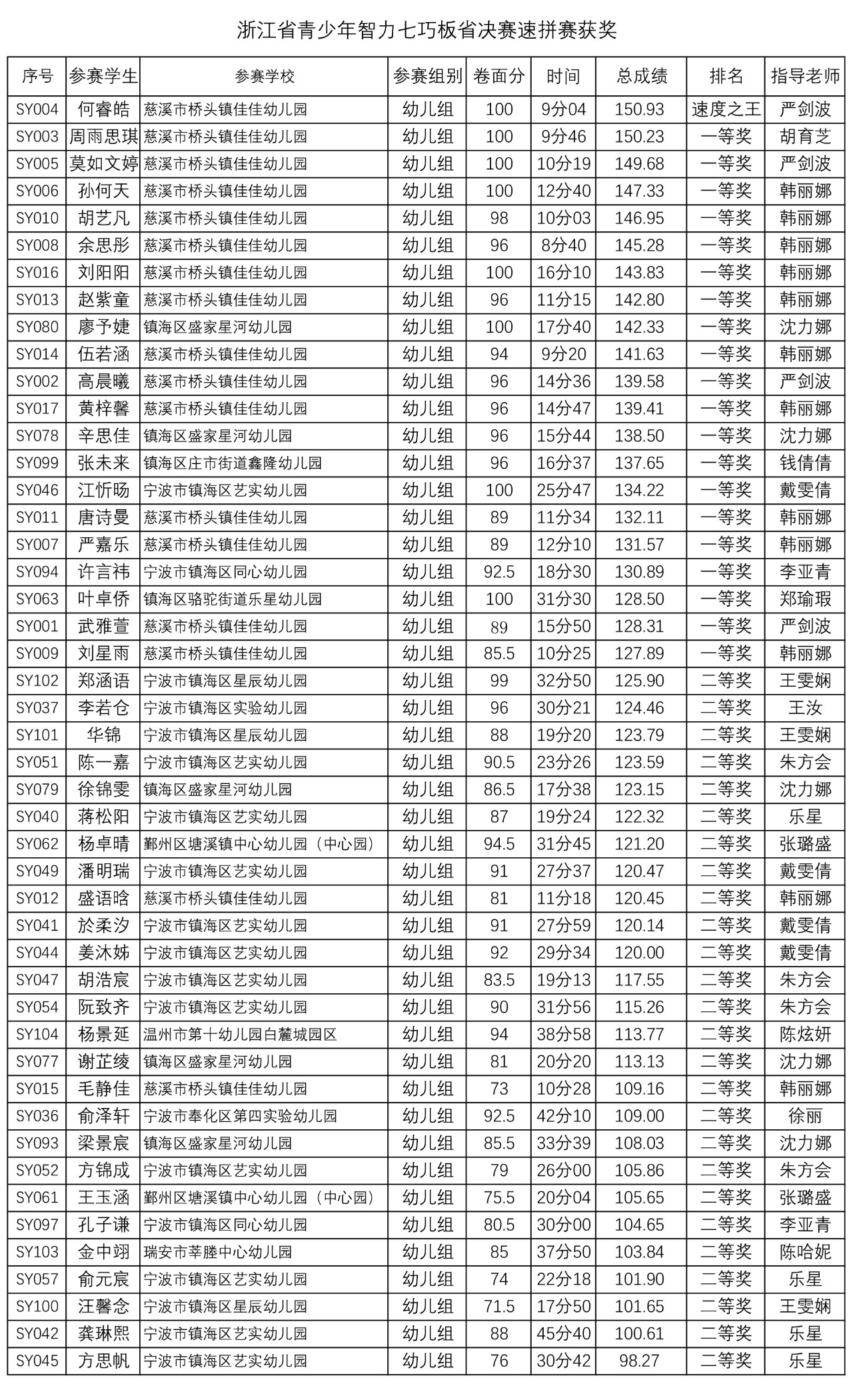 智力七巧板速拼赛总决赛共40图(含多副组合),为1-4副的图案(其中幼儿组为1-3副),分两张试卷。这是一场智力与速度的较量,考验选手们的反应力,手眼协调,记忆力以及智力七巧板拼搭分解的能力,本场比赛汇聚了省内智力七巧板速拼高手,在今年的各级巡回赛中其中来自宁波慈溪和镇海的选手获得152分创造了幼儿组和小学组的巡回赛记录。