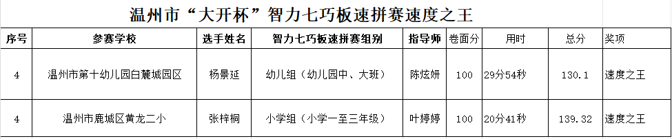 6月15日,由温州市青少年活动中心、浙江省智力七巧板竞赛组委会举办的浙江省首届“大开杯”青少年智力七巧板竞赛温州选拔赛圆满结束。