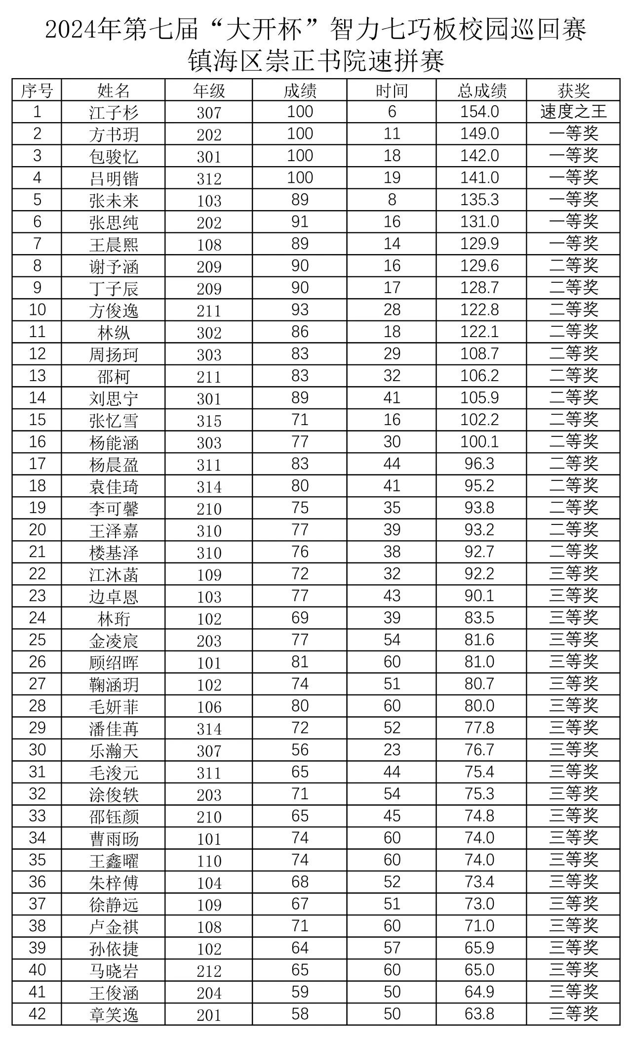 成绩公布-2023镇海区精英小学速拼赛成绩