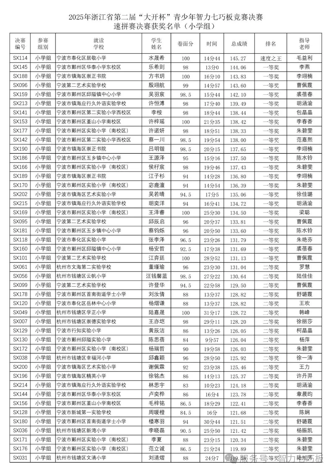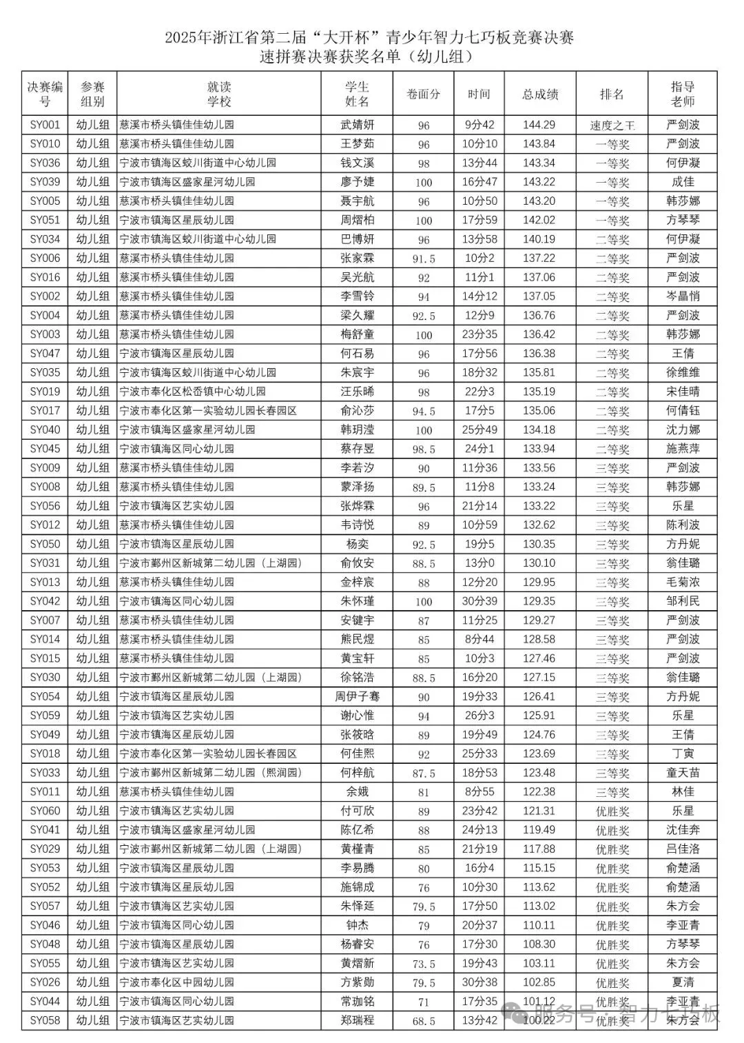 2025年浙江省第二届“大开杯”青少年智力七巧板竞赛决赛于2025年5月24日圆满举行。根据竞赛规则,按评审得分计算出获奖等次,现予以公示,公示期为5月27日至6月2日。