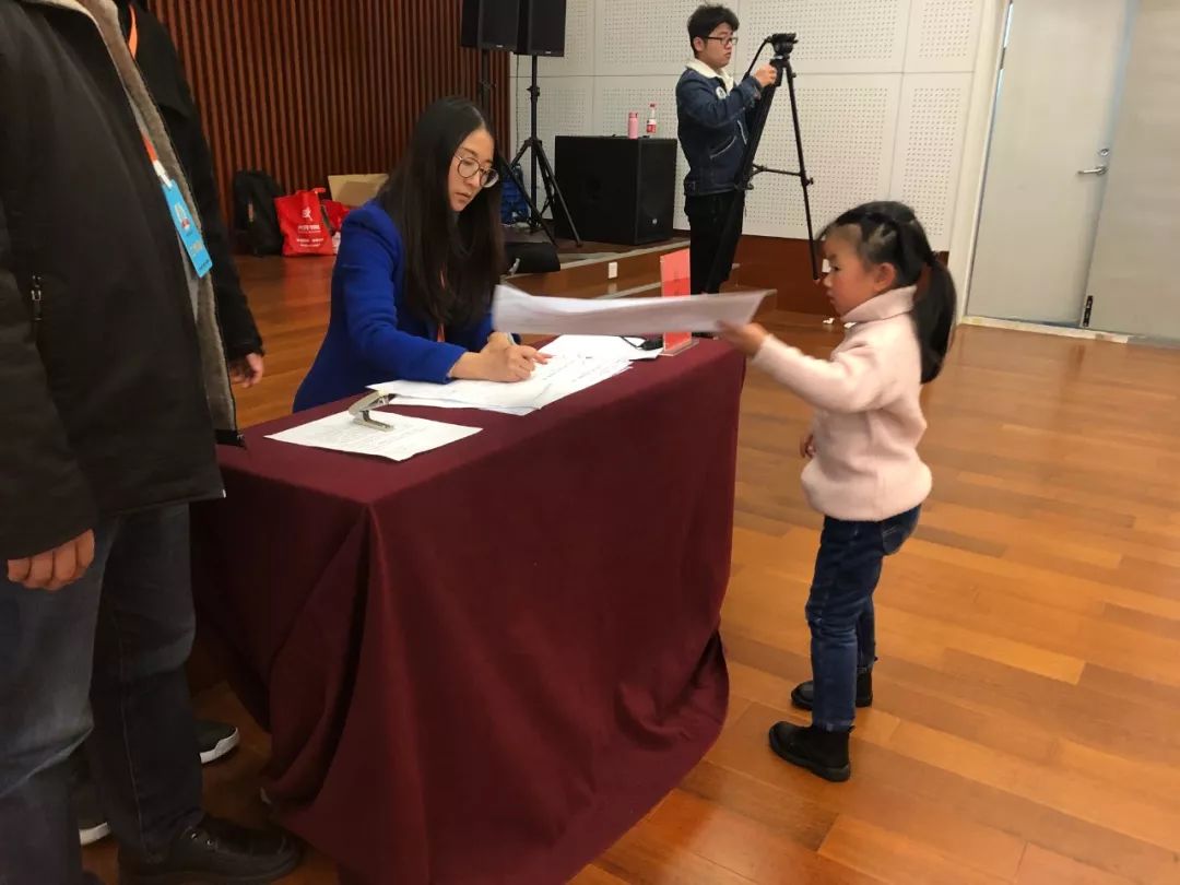 小朋友们在家长或老师的陪同中入场,所有人找到自己的座位后,家长和老师在外等候,场内主持人宣读考场规则。