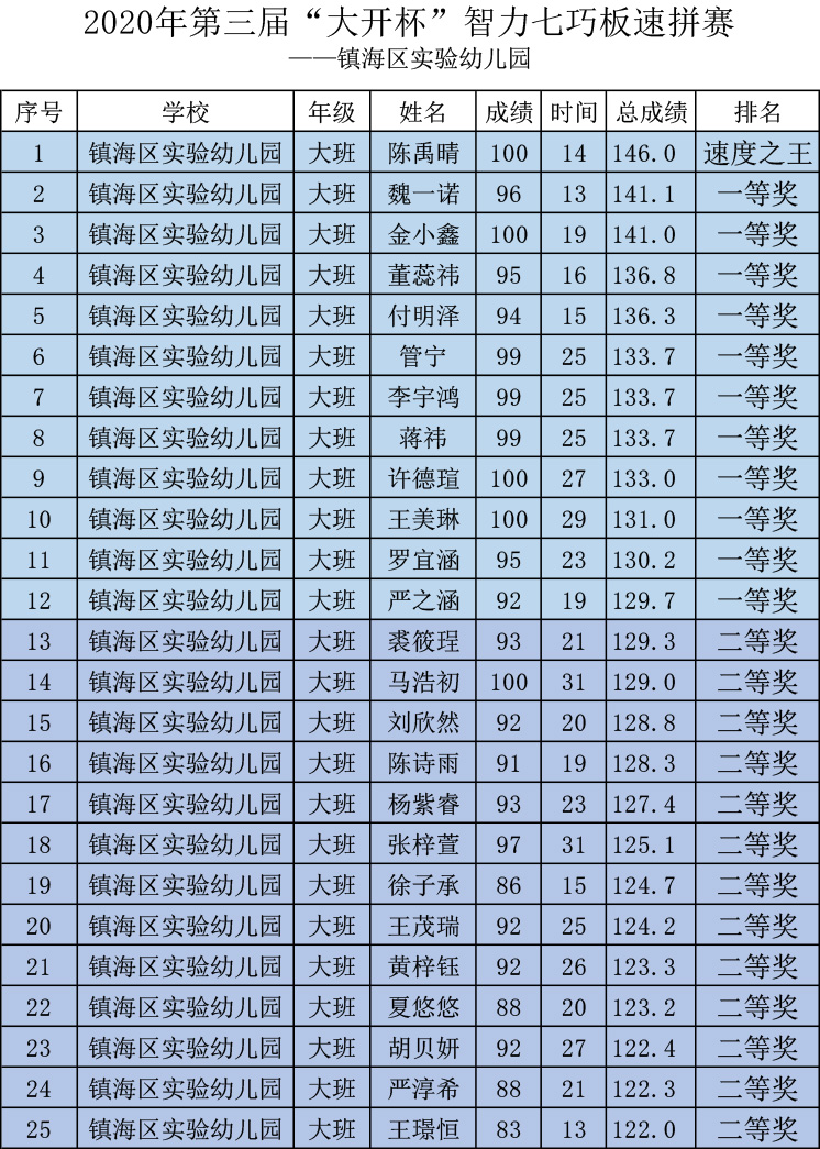 为锻炼青少年动手、动脑能力;激发科学兴趣,启迪创造意识;培养空间想象力,提高科学素质和审美能力;促进科技教育活动的普及与发展。11月23日上午,由七巧科技系列活动宁波组委会主办的2020年第三届“大开杯”智力七巧板校园巡回赛在镇海区实验幼儿园举行,全园110个大班小朋友参加了本次速拼赛。