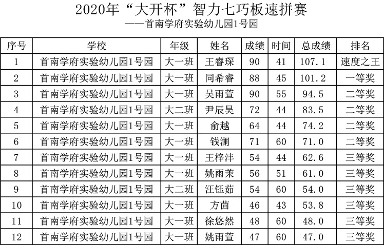 为锻炼青少年动手、动脑能力;激发科学兴趣,启迪创造意识;培养空间想象力,提高科学素质和审美能力;促进科技教育活动的普及与发展。11月27日上午,由七巧科技系列活动宁波组委会主办的2020年第三届“大开杯”智力七巧板校园巡回赛在首南学府幼儿园1号园举行,大班小朋友参加了本次速拼赛。