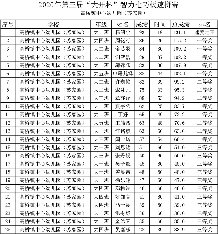为锻炼青少年动手、动脑能力;激发科学兴趣,启迪创造意识;培养空间想象力,提高科学素质和审美能力;促进科技教育活动的普及与发展。12月1日上午,由七巧科技系列活动宁波组委会主办的2020年第三届“大开杯”智力七巧板校园巡回赛在高桥镇中心幼儿园(苏家园)举行,大班小朋友参加了本次速拼赛。